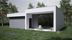 Концептуальный дом от строительной компании "ДМ Групп" с рациональной планировкой. Зонированная кухня - столовая с отдельной гостиной. Панорамные угловые окна обеспечивают достаточно света и выход на террасу. В доме предусмотрены две спальни и современная мастер-спальня, которая предлагает все удобства для комфортного проживания.