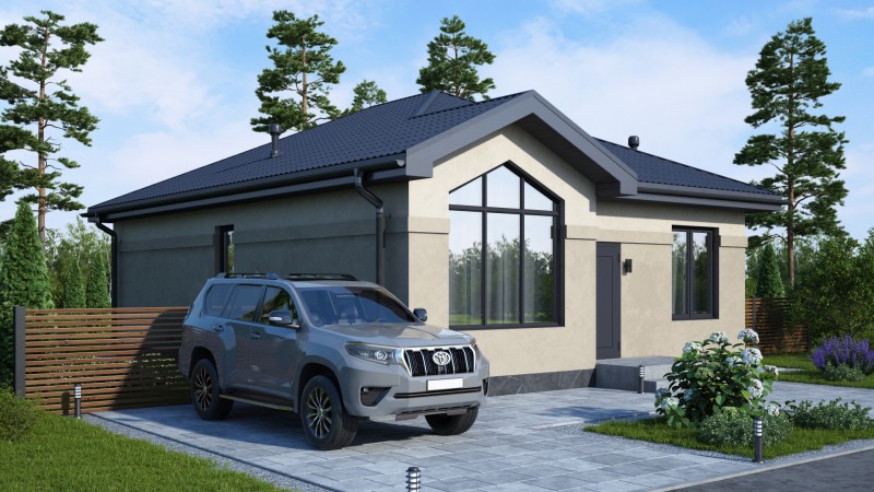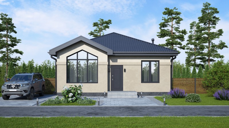 Компактный функциональный одноэтажный дом с оригинальным фасадом и интересной кровлей. Имеет три просторных спальни, кухню гостиную с выходом на задний двор, котельную-постирочную, второй санузел можно разместить в котельной.