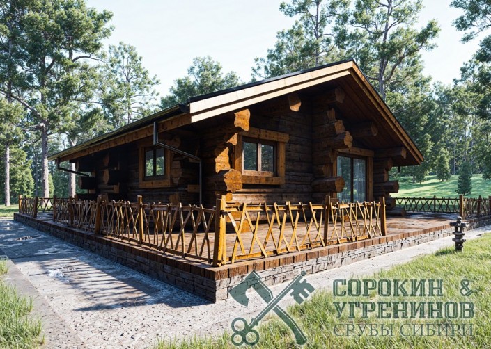 Проект сруба русской бани из бревна диаметром 300мм, общей площадью 34м2. Проект выполнен в русском стиле по классической технологии ручной рубки в обло. Баня имеет комнату отдыха, санузел, помывочную комнату и парную. Баня проектировалась по индивидуальному заказу для установки на понтоны, как плавучая баня, и совсем скоро она будет плавать по Саяношушенскому водохранилищу в горах Хакасии.