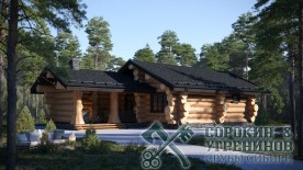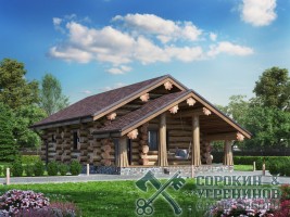 Сруб бани рубленый из бревна кедра диаметра 360мм площадью 75,8м2. Размер сруба 6,2х15,5 метров по осям. Баня имеет большую террасу, парная и мойка раздельные, есть комната отдыха и санузел. Сруб рубленый вручную в русскую чашу (охлоп), брёвна окоренные гидро-окоркой (водой под высоким давлением), а так, же это можно сделать скобелем или лопатой, или строганное рубанком. Объем бревна в срубе 92м3.