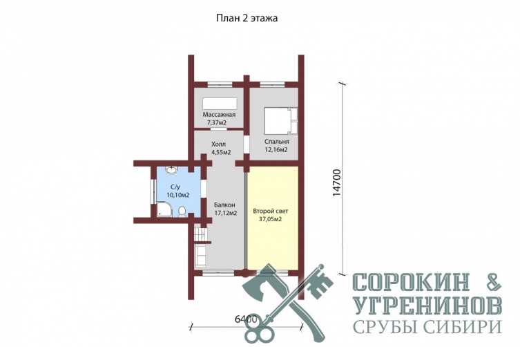 Проект банного комплекса разрабатывался для санатория, два этажа, диаметр бревна 280-320мм, размер бани 14х14,7м. Объем бревна в срубе 190м3, общая площадь сруба 279м2. На первом этаже парная, душевая с бассейном, два отделения раздевалок, санузел, большая гостиная с вторым светом, большая терраса. На втором этаже комната отдыха, санузел, холл, балкон.