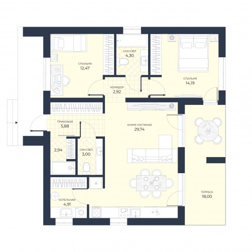 • Общая площадь 80 м2